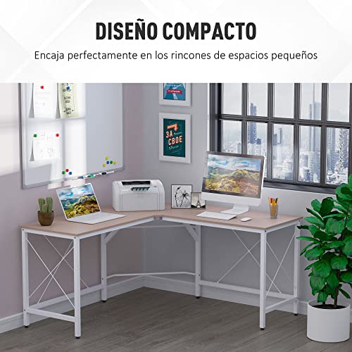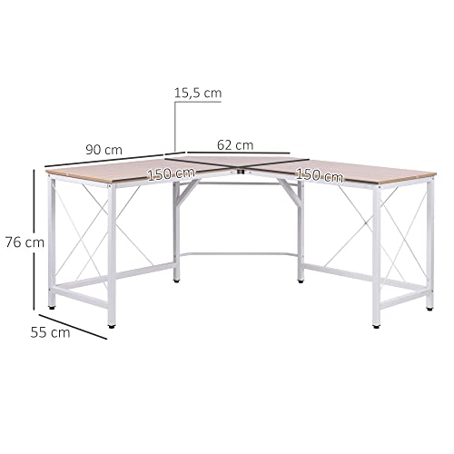 HOMCOM - طاولة كمبيوتر للمنزل والمكتب، طاولة زاوية على شكل حرف L بإطار معدني من هومكوم، أبعاد 1.50 × 1.50 متر × 76 سم