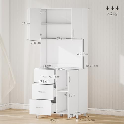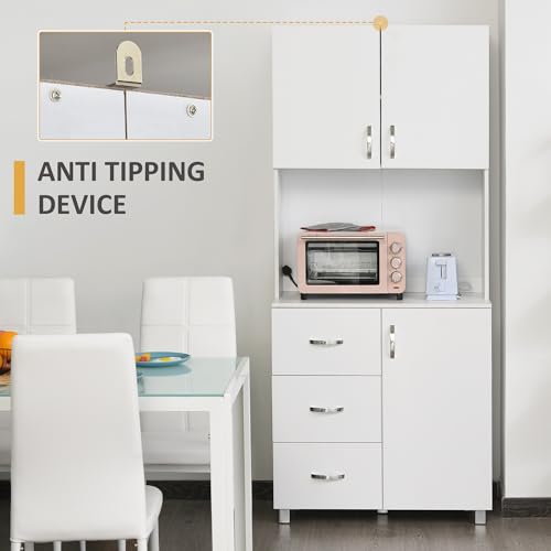 HOMCOM - خزانة مطبخ قائمة بذاتها، خزانة بأبواب وأرفف، 3 أدراج ومساحة مفتوحة، وحدة تخزين بارتفاع قابل للتعديل، لون أبيض من هومكوم