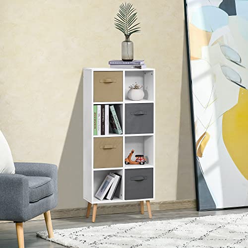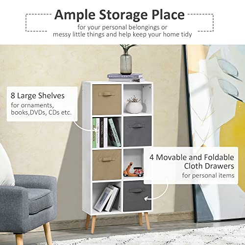 HOMCOM - وحدة تخزين قائمة بذاتها مكونة من 8 أقسام مع 4 أدراج قماش وأرفف لتنظيم المنزل والمكتب والأثاث، 54.5 سم طول × 24 سم عرض × 122.5 سم ارتفاع من هومكوم، أبيض