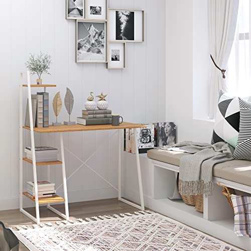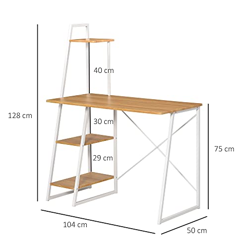 HOMCOM - مكتب كمبيوتر منزلي مع أرفف تخزين بثلاثة مستويات من هومكوم، طاولة مذاكرة وكتابة، محطة عمل للمساحات الصغيرة، لون طبيعي
