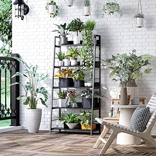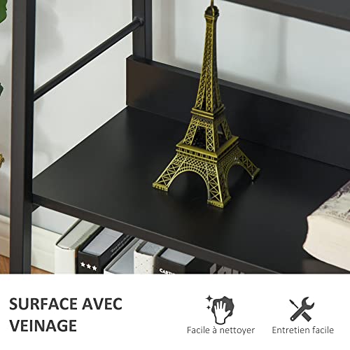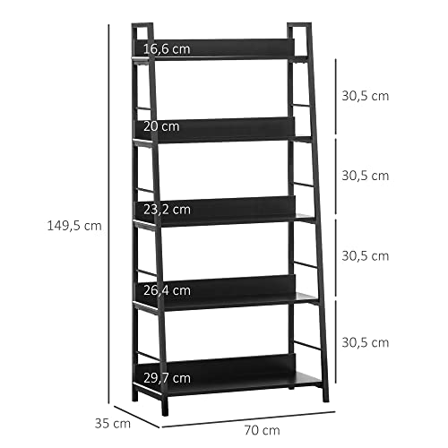 HOMCOM - هومكوم رف كتب مائل بنمط صناعي مع 5 مستويات، طول 70 × عرض 35 × ارتفاع 150 سم، لون اسود، خشب، غير لامع