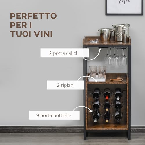 HOMCOM - هومكوم رف مشروبات بنمط صناعي يتسع لـ 9 زجاجات مع رف ورفوف للنبيذ، 52 × 40 × 113 سم، بني