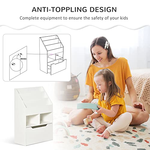 HOMCOM - رف كتب للأطفال مع درج تخزين، مكتبة كتب للأطفال مع عجلات، منظم ألعاب لغرفة النوم وغرفة اللعب بلون أبيض من هومكوم