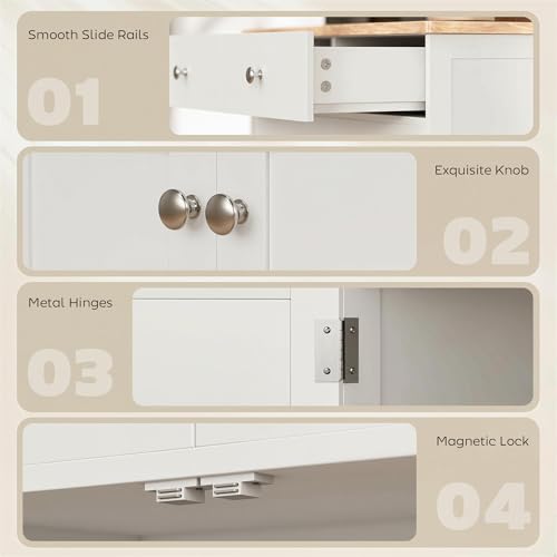 HOMCOM - دولاب تخزين جانبي أرضي متعدد الاستخدامات بسطح من خشب صلب ورف قابل للتعديل ودرج، يمكن استخدامخ كطاولة لغرفة الطعام والمعيشة والرواق والمطبخ من هوم كوم