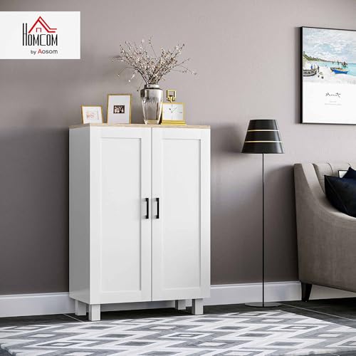 HOMCOM - دولاب تخزين مودرن لغرفة المعيشة مع بابين ورف قابل للتعديل وقاعدة مرتفعة وأداة مضادة للانزلاق للمطبخ وغرفة الطعام والطرقة وغرفة النوم مقاس 60 × 30 × 90 سم من هومكوم، أبيض، خشب مُصنع