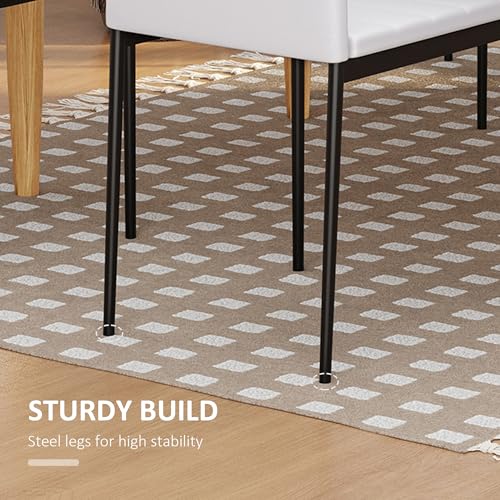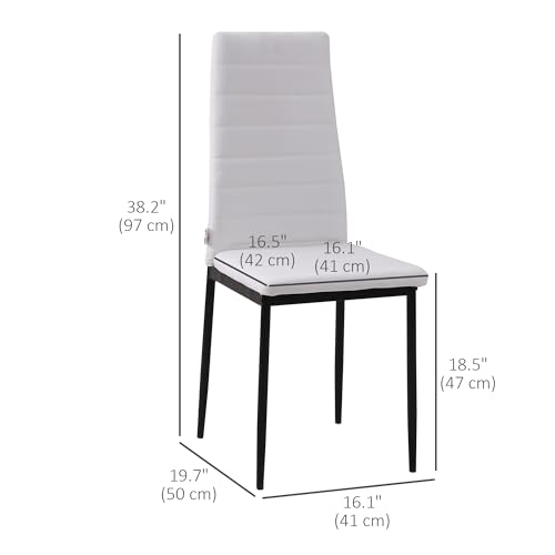 HOMCOM - هومكوم مجموعة كراسي طعام عصرية مكونة من 4 قطع، كراسي مطبخ منجدة من قماش الكتان مع قناة بارزة وارجل معدنية لغرفة المعيشة وغرفة الطعام وغرفة النوم، ابيض