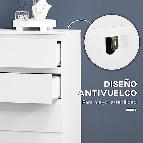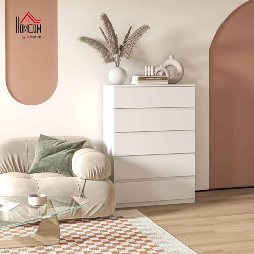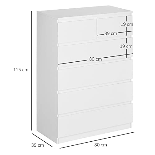 HOMCOM - دولاب مودرن بـ6 ادراج تخزين خشبية من هومكوم، خزانة لغرفة النوم والمدخل وغرفة المعيشة والمكتب، يتحمل وزن اقصى 50 كجم، 80×39×115 سم، ابيض