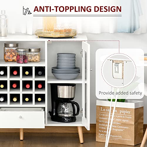 HOMCOM - بوفيه عصري للمطبخ بأبواب زجاجية ودرج ورف يتسع لـ 12 زجاجة، لغرفة المعيشة بلون أبيض من هومكوم، خشب مُصنع