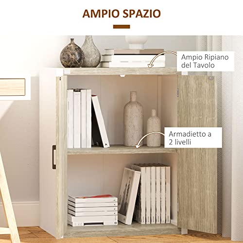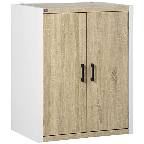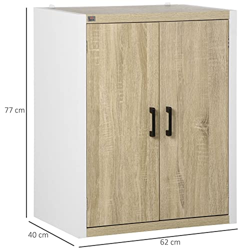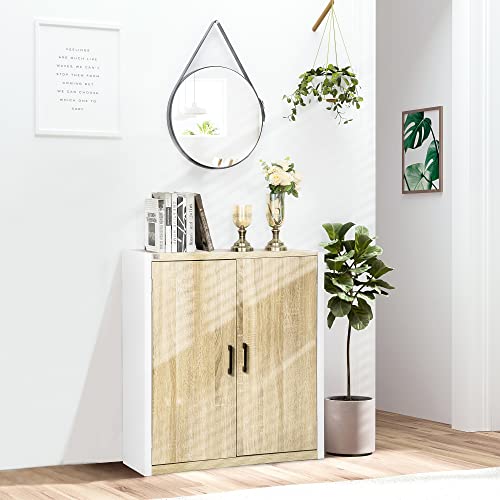 HOMCOM - دولاب متعددة الاغراض للمدخل وغرفة المعيشة ببابين مع رف قابل للتعديل من خشب ام دي اف من هومكوم، 62 × 40 × 77 سم، ابيض وخشبي