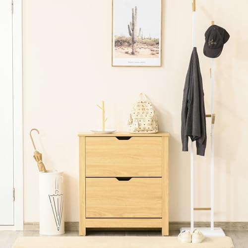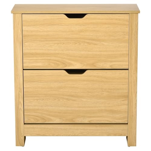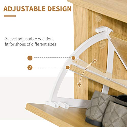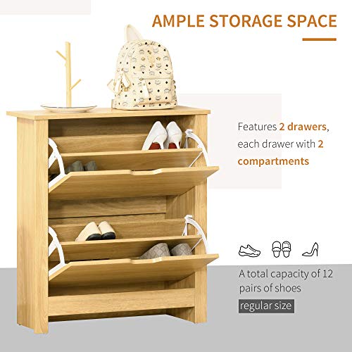 HOMCOM - هومكوم خزانة احذية ضيقة، خزانة تخزين احذية موفرة للمساحة مع درجين قلاب ورفوف قابلة للتعديل لـ 12 زوج من الاحذية للمدخل وغرفة المعيشة، خشب طبيعي