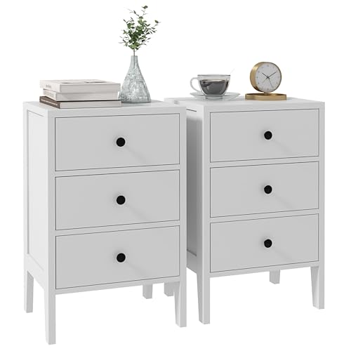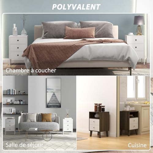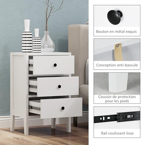 HOMCOM - طقم طاولات جانبية من هومكوم طاولتان جانبيتان طاولة بجانب السرير مع 3 أدراج لغرفة النوم مصنوعة الخشب الأبعاد: طول 40 × عرض 30 ارتفاع 64 سم لون أبيض خشب مُصنع