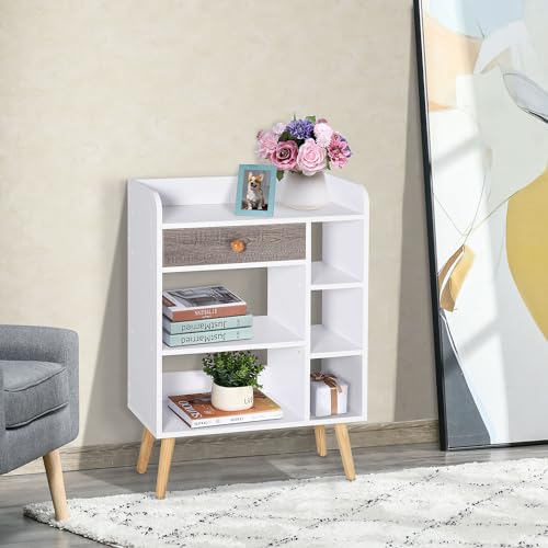 HOMCOM - وحدة تنظيم كتب جانبية قائمة بذاتها مع درج و6 أرفف للمكتب والمنزل من هومكوم، لون أبيض