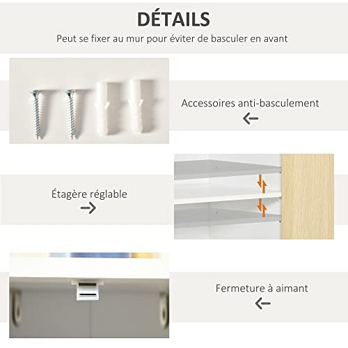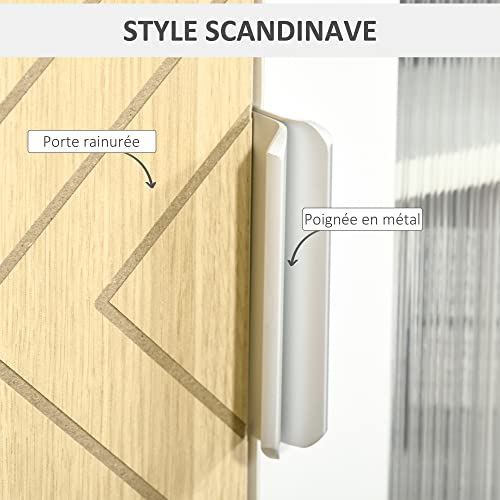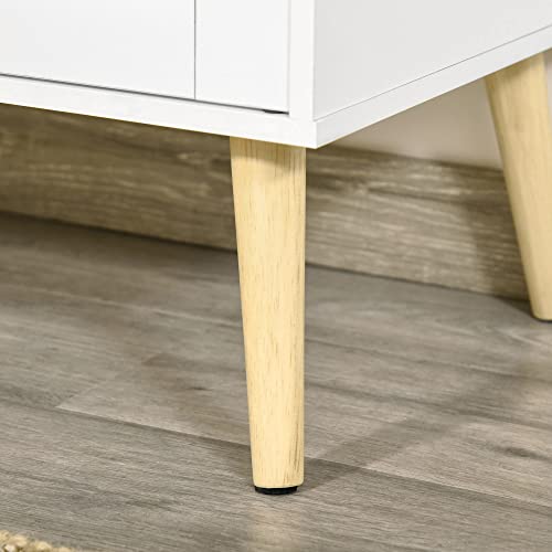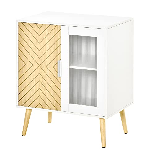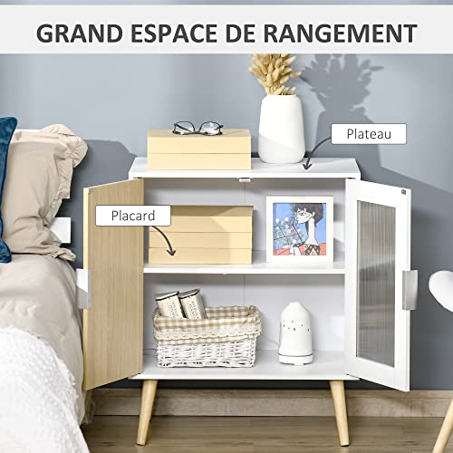 HOMCOM - وحدة تخزين جانبية بتصميم اسكندنافي ببابين مع رف مقاس 60 طول × 40 عرض × 72 سم ارتفاع من ألواح خشب ام دي اف بتصميم رسومات بيضاء ومظهر خشبي فاتح واكريليك من هومكوم