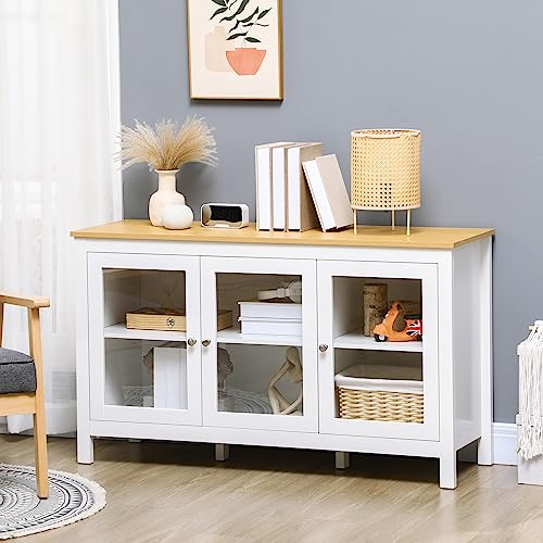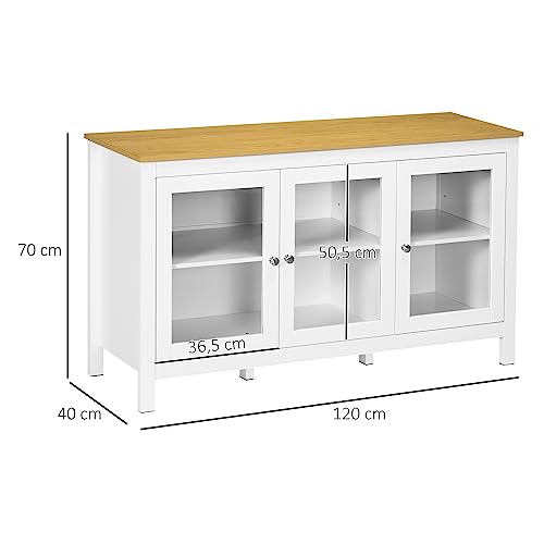 HOMCOM - دولاب جانبي من الخشب مكون من 3 أبواب مع رفين قابلين للتعديل مقاس 120 × 40 × 70 سم من هومكوم، أبيض