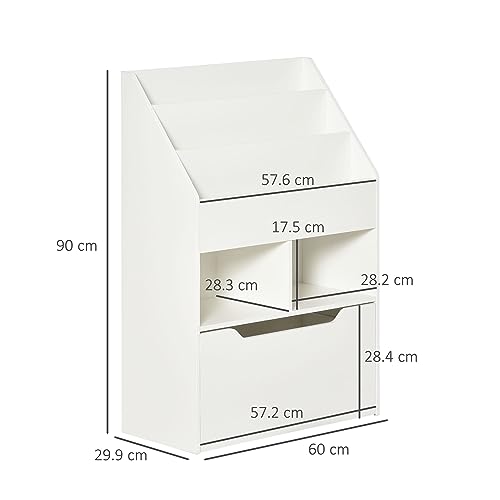 HOMCOM - هومكوم خزانة كتب صغيرة للاطفال مع ارفف ودرج وعجلات، رف العاب وكتب من خشب ام دي اف لغرفة الاطفال، 60 × 30 × 90 سم، ابيض