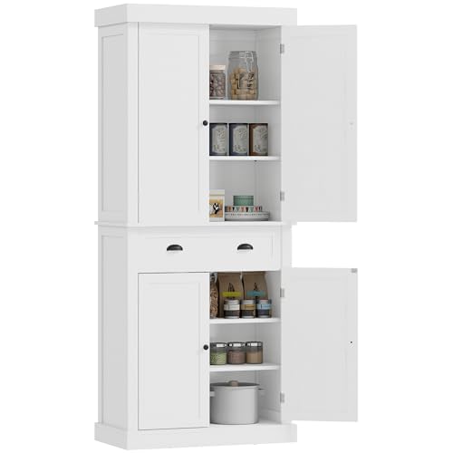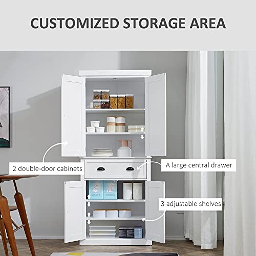 HOMCOM - دولاب تخزين مطبخ من هومكوم، بتصميم تقليدي قائم بذاته - 76 طول × 40.5 عرض × 184 ارتفاع (سم)، أبيض، خشب مُصنع