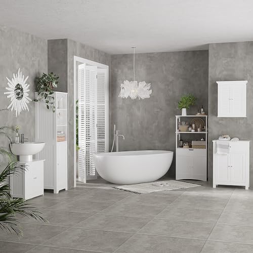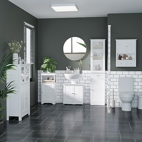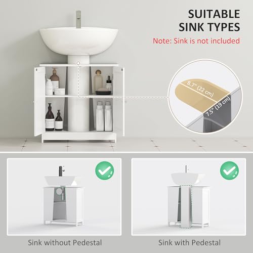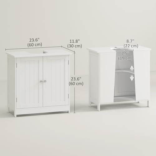 HOMCOM - دولاب حمام أسفل الحوض ببابين ورف، أثاث حوض حمام بقاعدة من هومكوم، أبيض