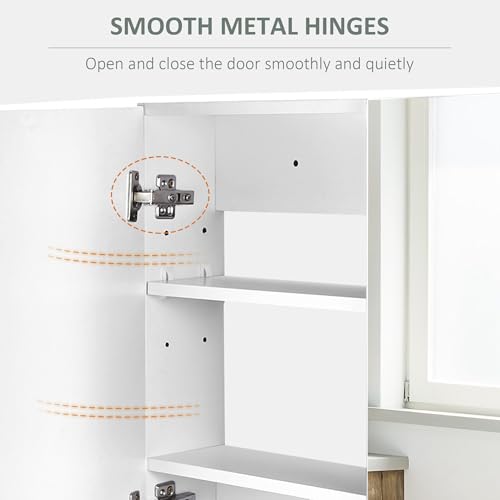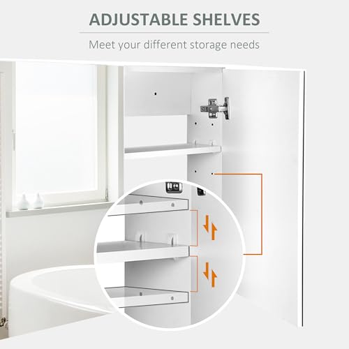 HOMCOM - دولاب أدوية يثبت على الحائط مع مراية، منظم تخزين لمراية الحمام مع رف قابل للتعديل، دولاب بباب مزدوج، إغلاق ناعم من هوم كوم، بلون أبيض، مقاس 80 سم × 60 سم