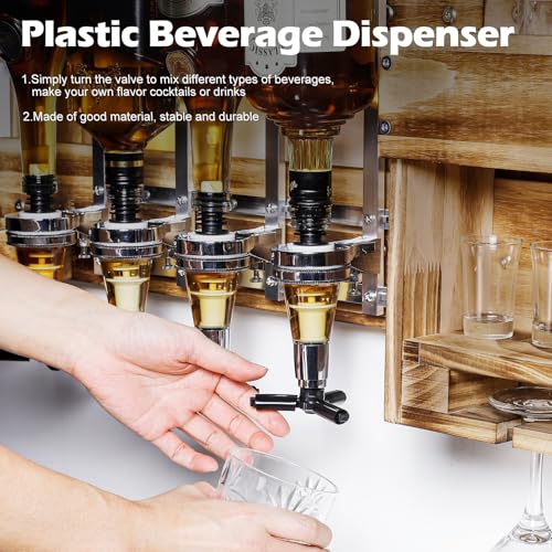 - موزع المشروبات: الجانب الأيسر من رف المشروبات المثبت على الحائط مزودة بأربعة موزعات نبيذ، مناسبة للزجاجات القياسية من 0.7-1 لتر من الجن والويسكي والنبيذ والروم والمشروبات الكحولية وما إلى ذلك. مع هذا البار المنزلي الصغير، يمكنك أيضًا تحضير المشروبات والكوكتيلات والشوترز بكل سهولة. أقصى قدرة تحميل على الجانب الأيسر من منطقة التوزيع: 10 كجم.