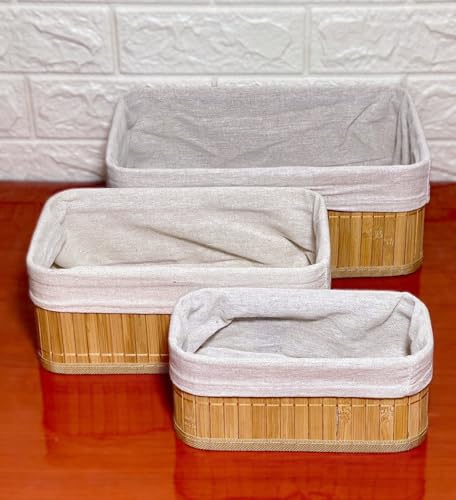 Generic - منظم اكسسوارات وأغراض منزليه - طقم سلات خوص مربعة 3 قطع مع حشوة قماشية - للترتيب والتخزين في الدواليب والطاولات