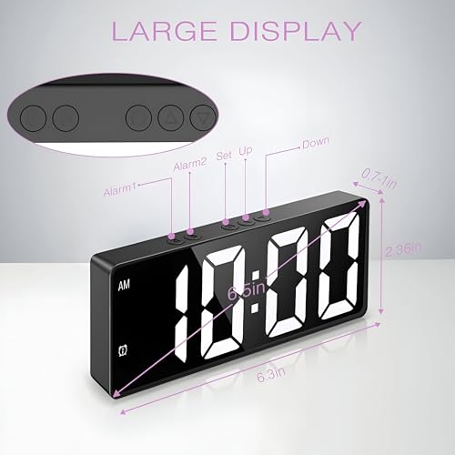 Generic - ساعة منبه منزلية - شاشة LED رقمية 6.5 انش مع منبه مزدوج، مثالية للاطفال وكبار السن، مثالية لغرفة النوم والمكتب