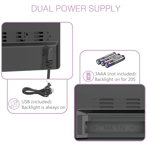 - ⏰【 وظيفة ذاكرة الوقت】 تتميز ساعة المنبه هذه بوظيفة ذاكرة الوقت عند استخدام بطاريات ايه ايه. سيعمل الوقت بشكل طبيعي بعد إيقاف التشغيل، ولا حاجة لإعادة الضبط بعد استعادة مصدر الطاقة. ملاحظة: عند التشغيل بواسطة USB وحده، لا توجد وظيفة ذاكرة بعد إيقاف التشغيل.