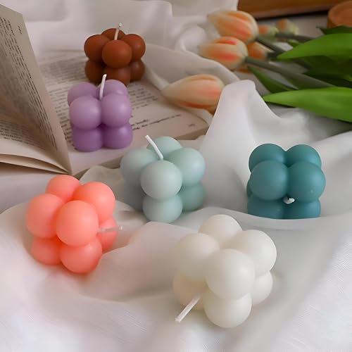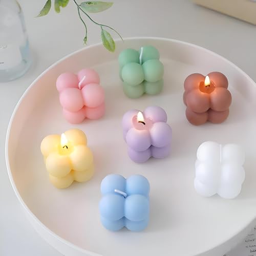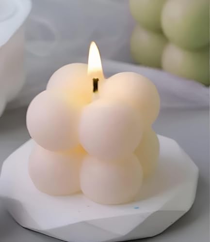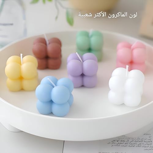 - صُممت هذه الشمعة على شكل مكعب بتصميم جمالي عصري وأنيق، وتتميز بأنماط تشبه الفقاعات تضيف لمسة راقية إلى أي غرفة أو مكان، وتخدم أغراض الديكور والعطرية.