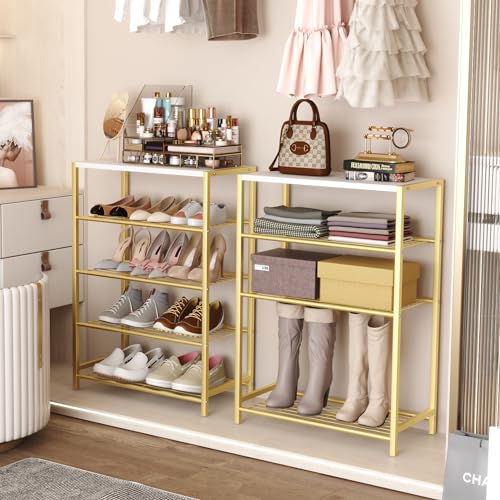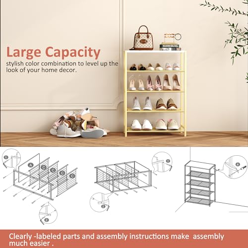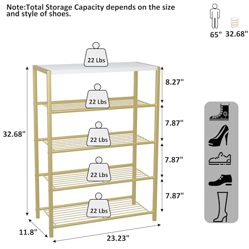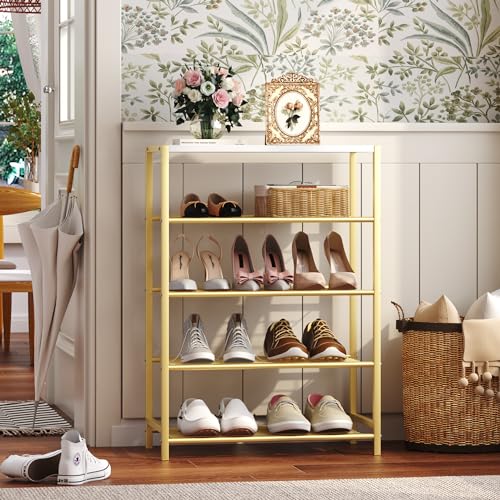 HOME BI - منظم أحذية معدن بتصميم صناعي مكون من 5 مستويات جزامة مزودة بأرفف تخزين وإطار معدني ثابت رف متين للمدخل والدولاب والممرات وغرفة المعيشة هوم بي ذهبي