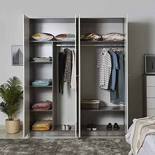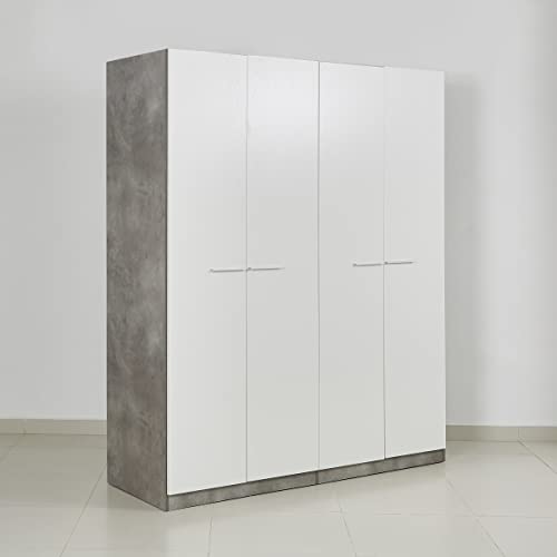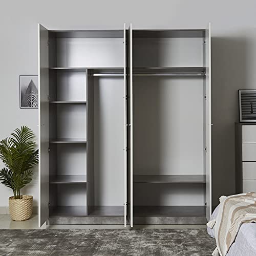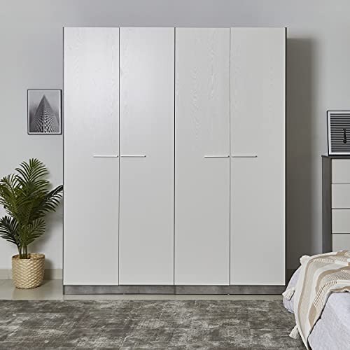 Home Box - دولاب ملابس باتارا بأربعة أبواب من هوم بوكس، 59.6 سم × 2.16 متر × 1.81 متر، أبيض/رمادي، خشب مُصنع