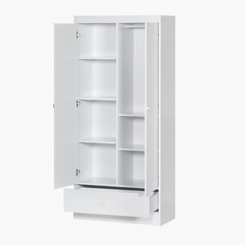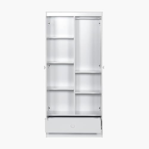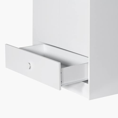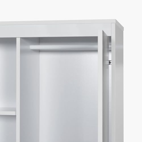 - يتميز دولاب الملابس ذو البابين بخشب هندسي ولمسة نهائية من القشرة، مما يعزز جاذبيته العامة. يحتوي دولاب الملابس الكلاسيكي هذا على درج واحد ومساحة واسعة لتخزين احتياجاتك. يمكنك تنظيف دولاب الملابس المتين بمسحه بانتظام للحفاظ عليه.