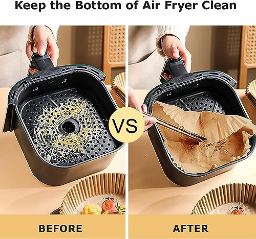 - حافظي على نظافة القلاية الهوائية: يمكن لهذه البطانات الورقية التي تستخدم لمرة واحدة أن تحمي المقلاة الهوائية من بقايا الطعام. بطانات خفيفة الوزن وعملية لا تسبب فوضى دهنية وتحافظ على سلامة وجمال طعامكِ بدون التأثير على مذاق طعامكِ؛ مما يوفر وقتك الثمين وطاقتكِ