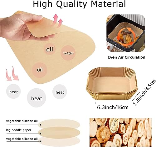 Cuisine Art - بطانة ورقية للاستعمال مرة واحدة للمقلاة الهوائية من هوم براند 100 قطعة، مربع، 16 سم، بني، ورق خبز