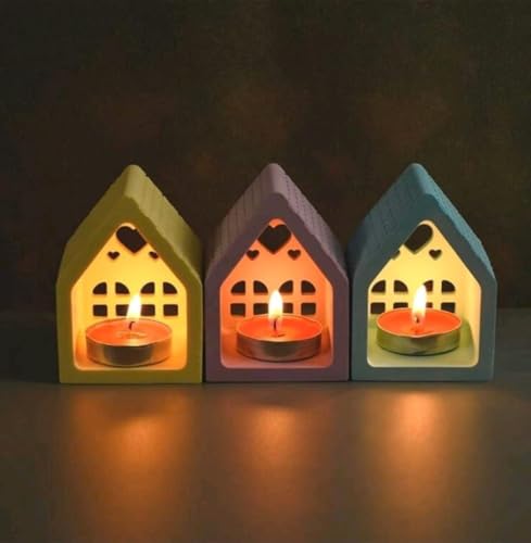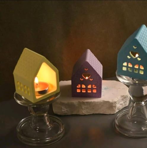 Generic - حامل شموع بتصميم منزل ، مثالي لتزيين الطاولات، الطراز العصري، يضفي لمسة دافئة على أي غرفة في المنزل. مناسب لغرف المعيشة، الطاولات، والمكتبات لإضاءة طبيعية وأجواء هادئة (1)