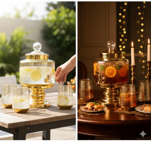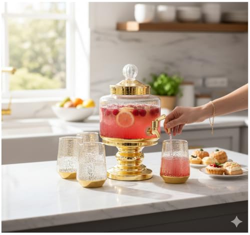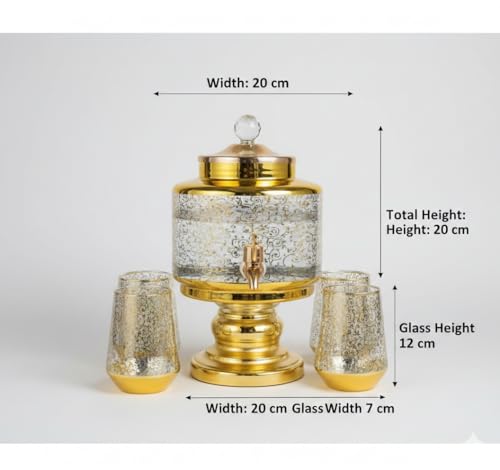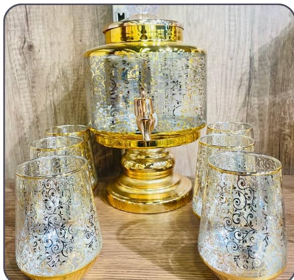 Home Care. - موزع عصير GG-1808 مع لمسات ذهبية، يأتي مع 6 أكواب، زجاجي، للاستخدام في المطبخ والمنزل من هوم كير