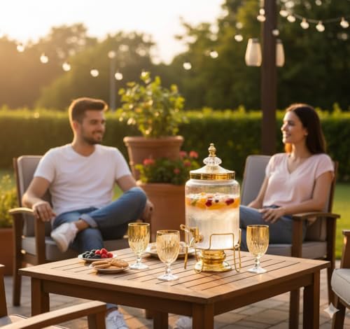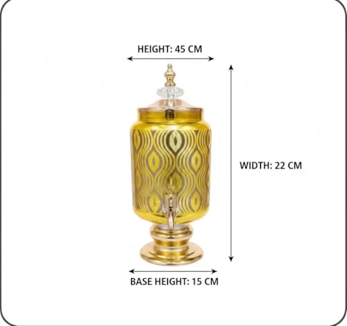 Home Care. - موزع عصير GG-1813 زجاج مزين بطلاء ذهبي، متنوع الاستخدامات للمطبخ والاستخدام المنزلي من هوم كير