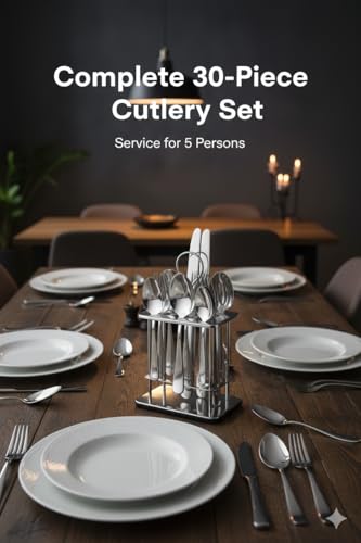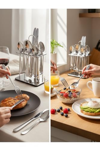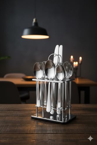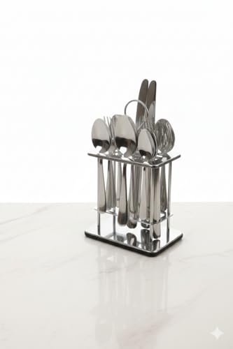 Home Care. - طقم معالق H-573 من الفولاذ المقاوم للصدأ مكون من 30 قطعة مع حامل أنيق بتصميم مموج لتناول الطعام من هوم كير، عبوة من 6 قطع