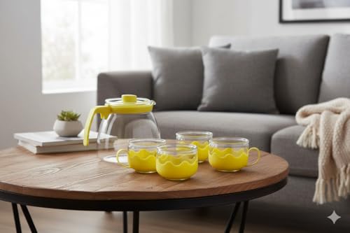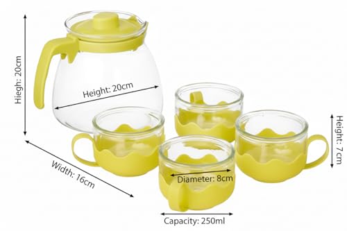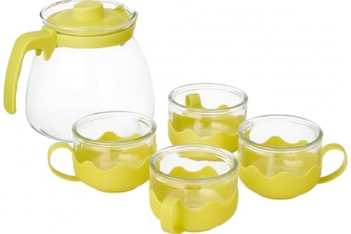 Home Care. - شفشق زجاجي PR-51 مع 4 أكواب، طقم مشروبات مطبخ كامل من هوم كير، عبوة من قطعة واحدة - زجاج شفاف