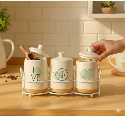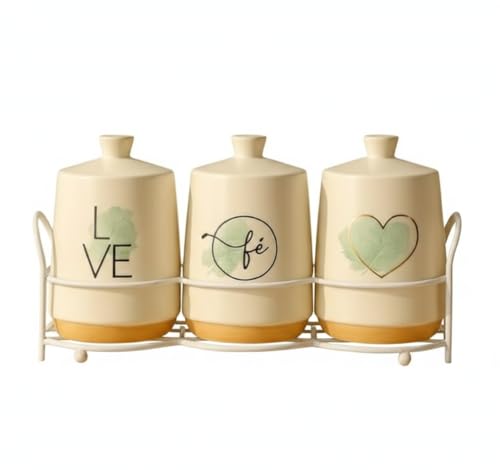 Home Care. - علب توابل من 3 قطع QQ-975 مصنوع من البورسلين الأبيض لتنظيم المطبخ بأناقة من هوم كير، طقم من قطعة واحدة