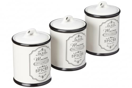Home Care. - طقم توابل بورسلين أنيق للمطبخ موديل TT-1347A من هوم كير، عبوة من طقم واحد مكون من 3 قطع، بورسلين أبيض