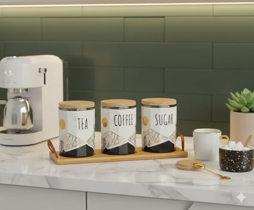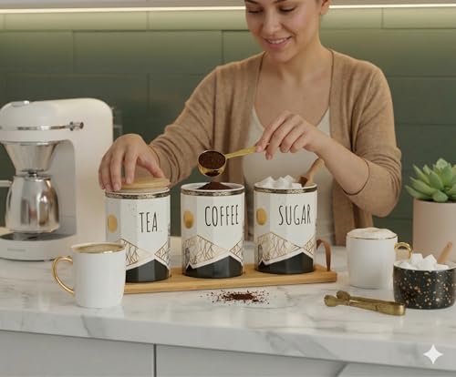 - ثلاث علب بسعة من 300 مل إلى 500 مل للشاي والسكر والقهوة.