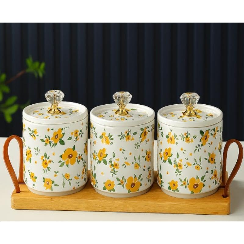 generic - طقم توابل سيراميك 3 قطع من هوم كير TT-1538-b لتنظيم المطبخ الانيق، عبوة من قطعة واحدة - سيراميك ابيض