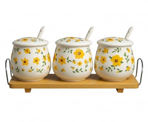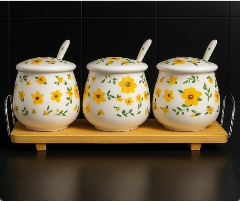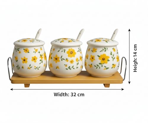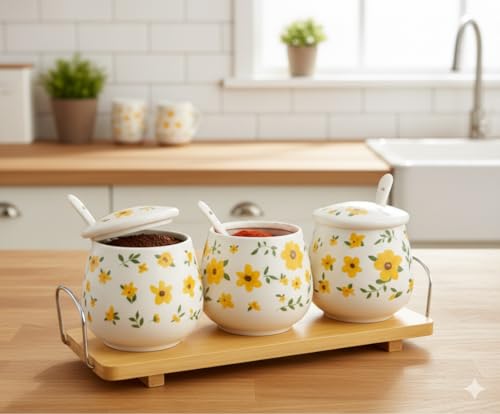 Home Care. - طقم توابل سيراميك TT-1540 متين لمطبخ منظم، مكون من 3 قطع من هوم كير، عبوة من قطعة واحدة، أبيض