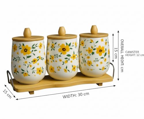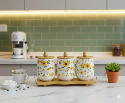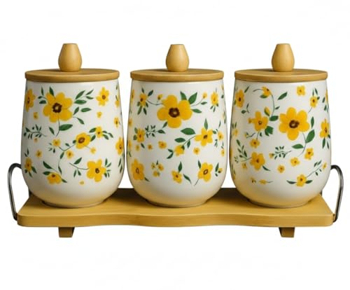 Home Care. - طقم برطمانات توابل سيراميك بتصميم أنيق للمطبخ من هوم كير، سيراميك بلون أبيض، طقم واحد من 3 قطع، TT-1541