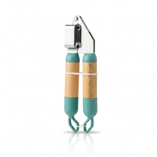 Home Care. - هراسة ثوم بمقبض سيليكون XD-42، أداة تحضير مريحة للمطبخ بمقبض خشبي من هوم كير، سيليكون/خشب، عبوة من 120 قطعة