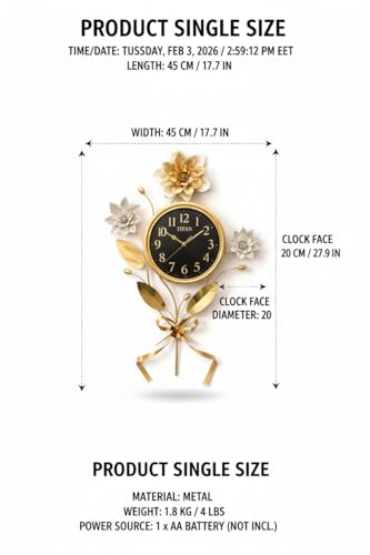 Home Care. - ساعة حائط مزخرفة ومتينة لديكور المنزل XX-1699 من هوم كير، مقاس 1.16 م × 49 سم