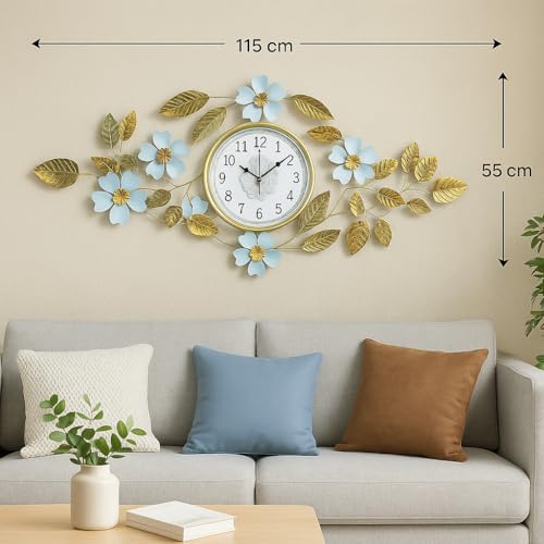 Home Care. - ساعة حائط مزخرفة من مادة متينة للديكور المنزلي XX-1744 من هوم كير، 1.15 م × 55 سم