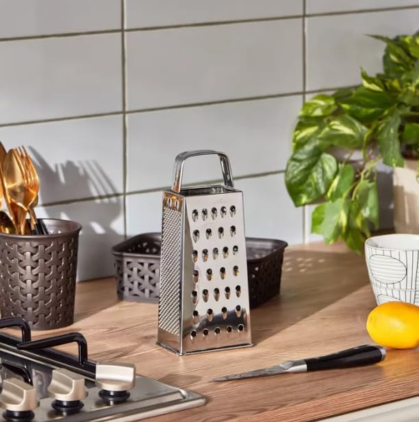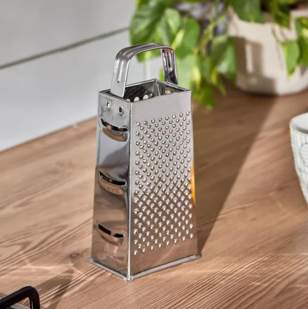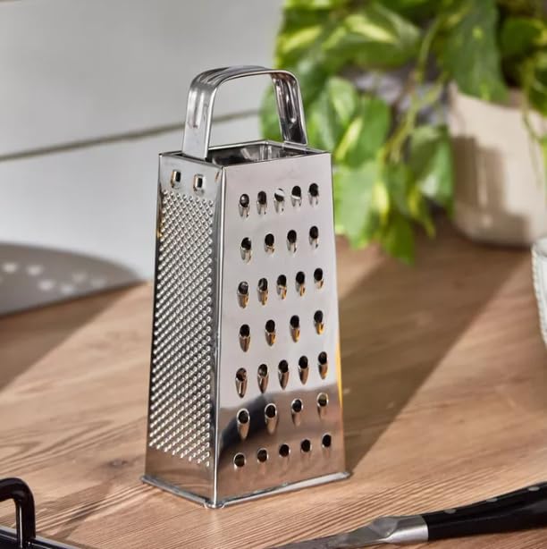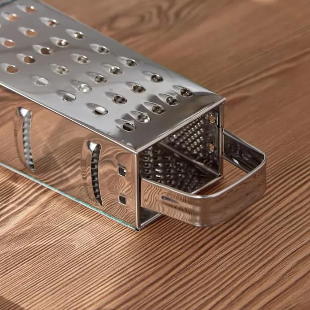 - مصممة بفتحات تقطيع مختلفة الأحجام على جميع الجوانب، هذه المبشرة ذات الجوانب الأربعة هي خيار رائع لأساسيات مطبخك. مصنوعة من الستانلس ستيل وآمنة غذائيًا وآمنة للغسل في غسالة الأطباق.