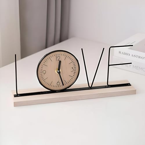 Generic - ساعة منزلية - مؤقت خشبي صامت انيق 30 × 12 سم لتزيين المكتب والمنزل، تصميم واسع، تصميم واسع لرفع الجمال الداخلي (موديل الحب)