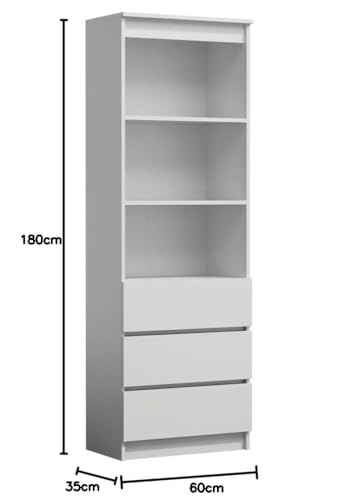 - عملي وبسيط: تصميم بسيط، أبعاد صغيرة (60 سم عرض × 180 سم ارتفاع × 35 سم عمق)، ثلاثة مساحات تخزين وثلاثة أدراج.