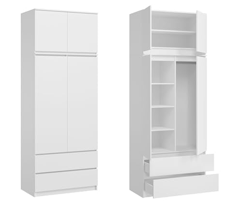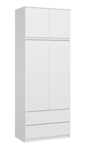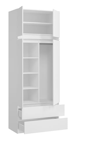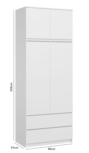 Home Collective - دولاب ملابس بارتفاع 2.35 متر وعرض 90 سم مع درجين و3 أرفف وقضيب من هوم كوليكتيف منظم منزلي مصنوع خشب ليفي متوسط الكثافة لون أبيض